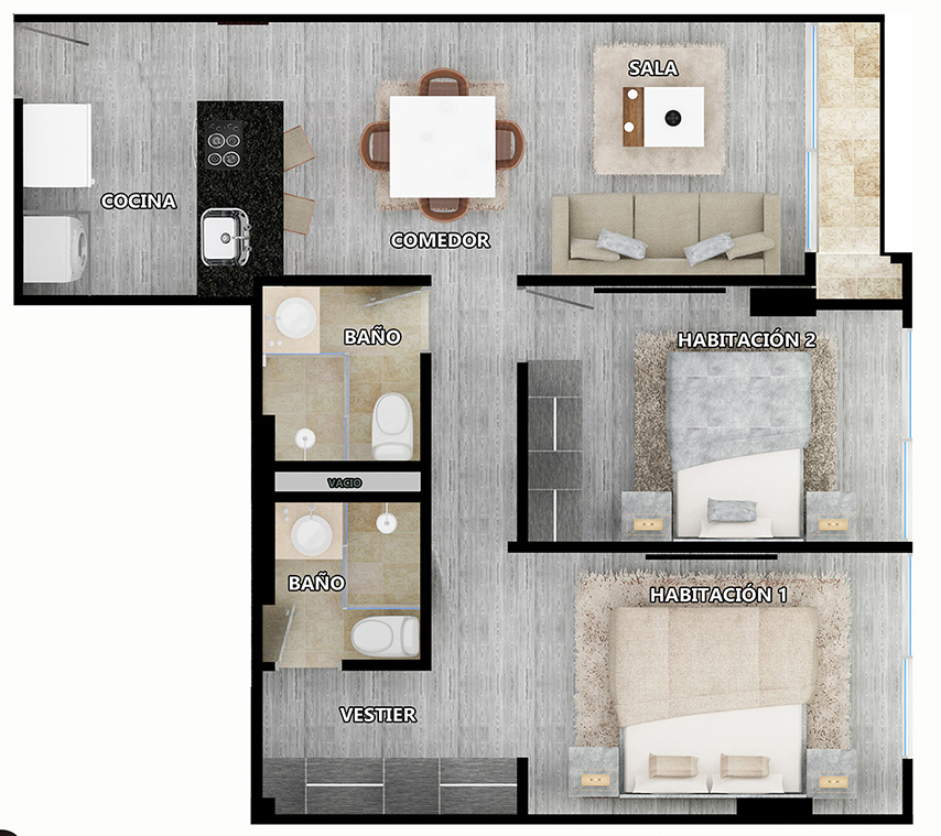 Esta es una representacion artistica del proyecto, sus materiales o especificaciones pueden variar segun norma o disposiciones técnicas y no comprometen al constructor