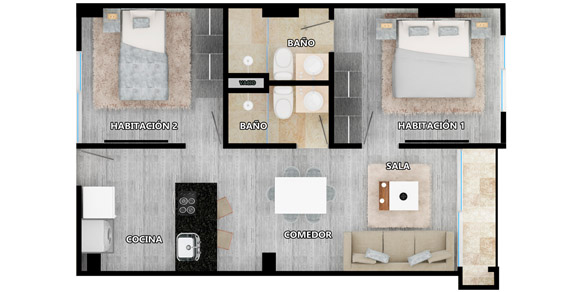 Esta es una representacion artistica del proyecto, sus materiales o especificaciones pueden variar segun norma o disposiciones técnicas y no comprometen al constructor